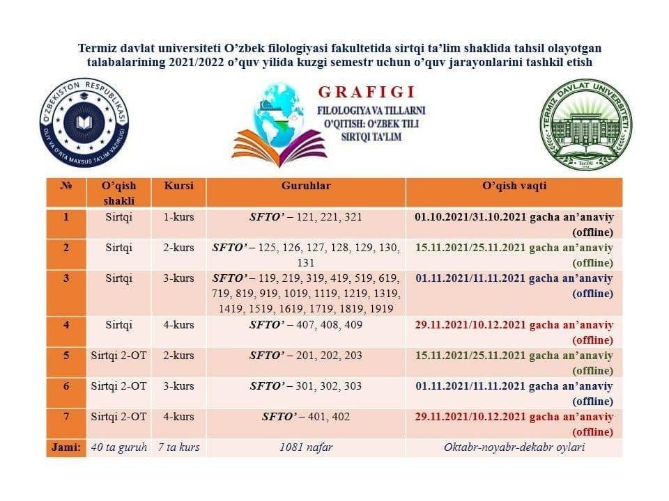 Termiz davlat universiteti Sport faoliyati va boshqaruvi akulteti 3-kurs, 4-kurs sirtqi taʼlim shakli va shu jumladan