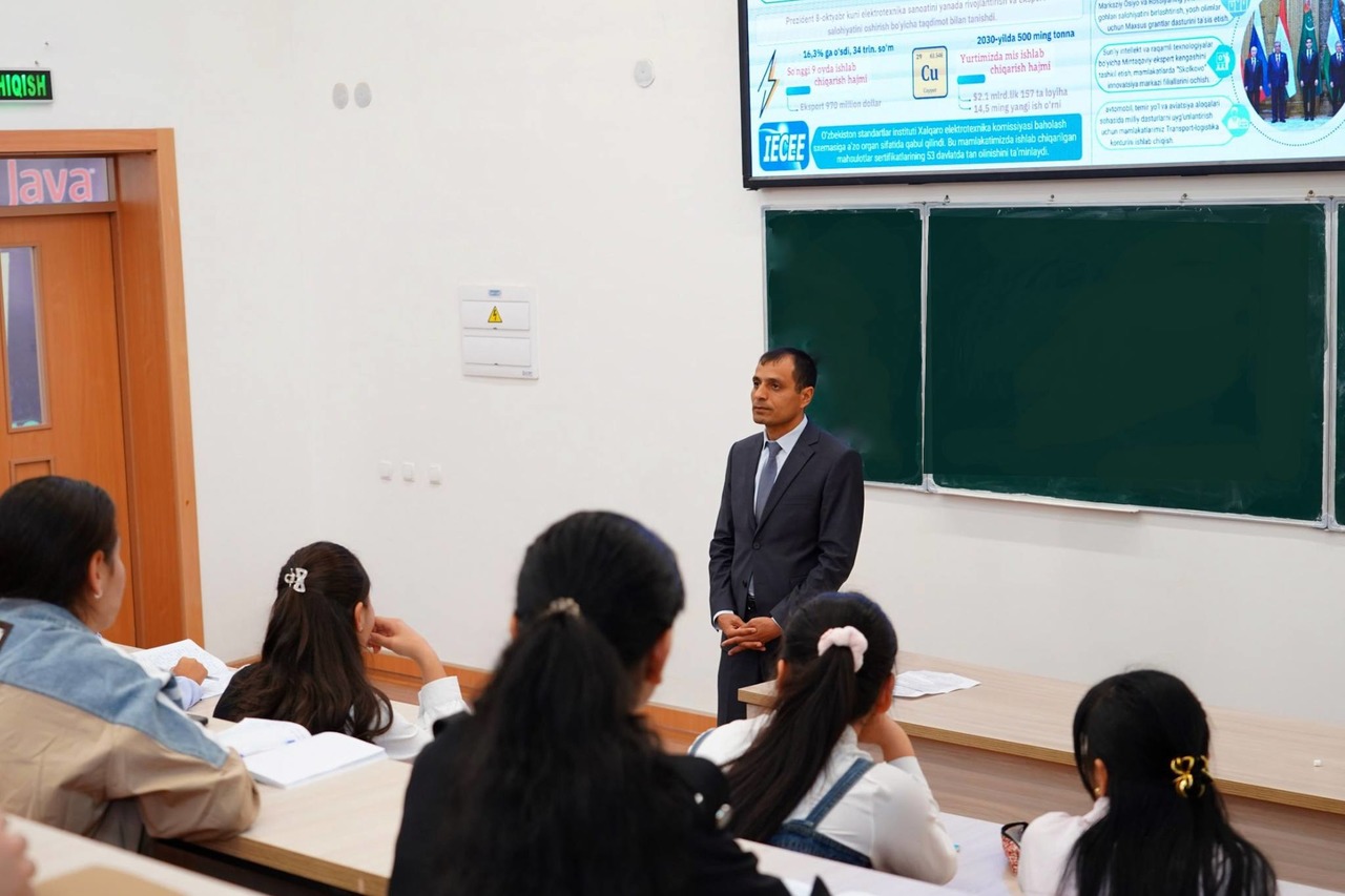 Dars jarayonida talabalarni milliy tarix va madaniyatga hurmat ruhida tarbiyalash, iftixor tuyg‘usini mustahkamlash hamda ma’naviy dunyoqarashini boyitishga alohida e’tibor qaratildi.