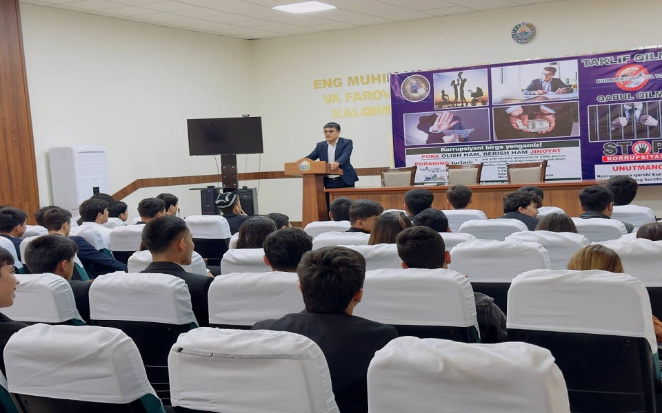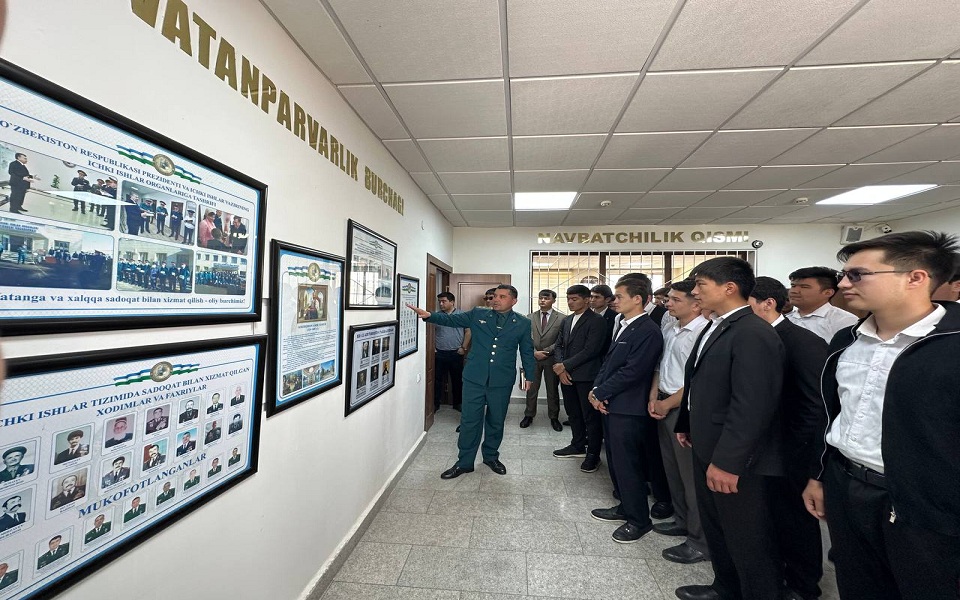 Dars davomida talabalar nazariy bilimlarini amaliyot bilan bog‘lab, ichki ishlar tizimida yuridik mutaxassislarning o‘rni, ularning qonun ustuvorligini ta’minlash, huquqbuzarliklarning oldini olish hamda fuqarolar huquqlarini himoya qilishdagi ahamiyati haqida batafsil ma’lumot oldilar.